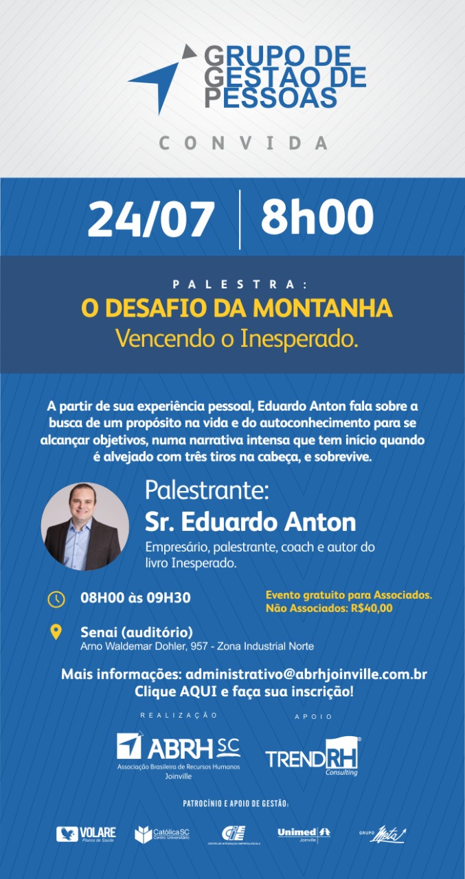 A TrendRH Consulting, em parceria com a ABRH SC, apresentam a palestra: O DESAFIO DA MONTANHA – Vencendo o Inesperado.